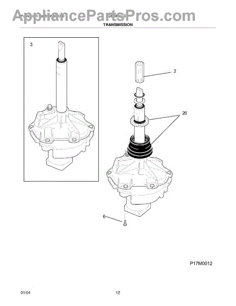 This transmission assembly drives the agitation and spin cycles by transferring motor power to the tub. Replacing a worn transmission helps restore proper wash action and spin performance.