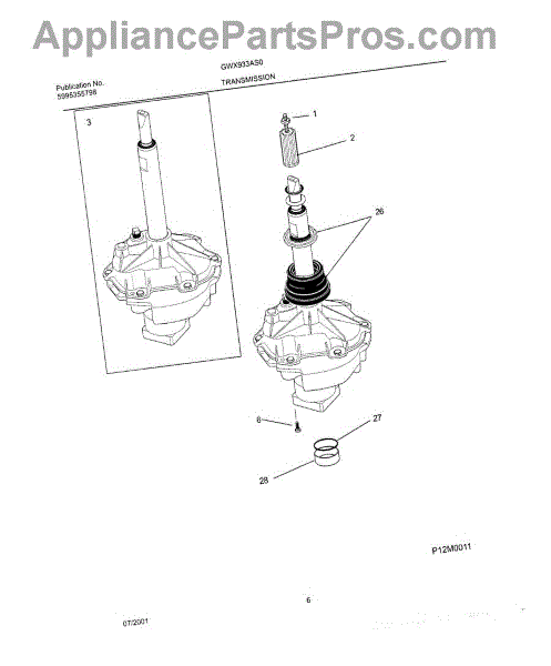 This replacement spacer positions the transmission bearing block to help maintain proper alignment and drivetrain spacing for reliable washer operation. It restores correct fit where worn or damaged spacers cause misalignment. What it does