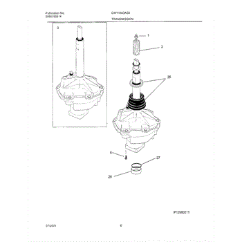 This replacement spacer positions the transmission bearing block to help maintain proper alignment and drivetrain spacing for reliable washer operation. It restores correct fit where worn or damaged spacers cause misalignment. What it does