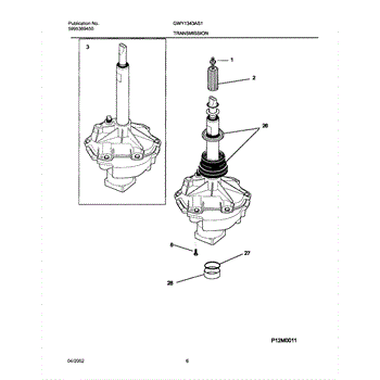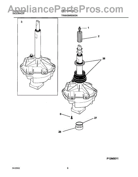 This replacement spacer positions the transmission bearing block to help maintain proper alignment and drivetrain spacing for reliable washer operation. It restores correct fit where worn or damaged spacers cause misalignment. What it does
