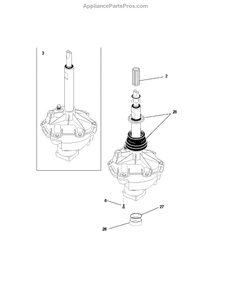 This replacement spacer positions the transmission bearing block to help maintain proper alignment and drivetrain spacing for reliable washer operation. It restores correct fit where worn or damaged spacers cause misalignment. What it does