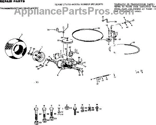 Parts for Craftsman 917252670: 10 / Transmission & Rear Wheel Parts