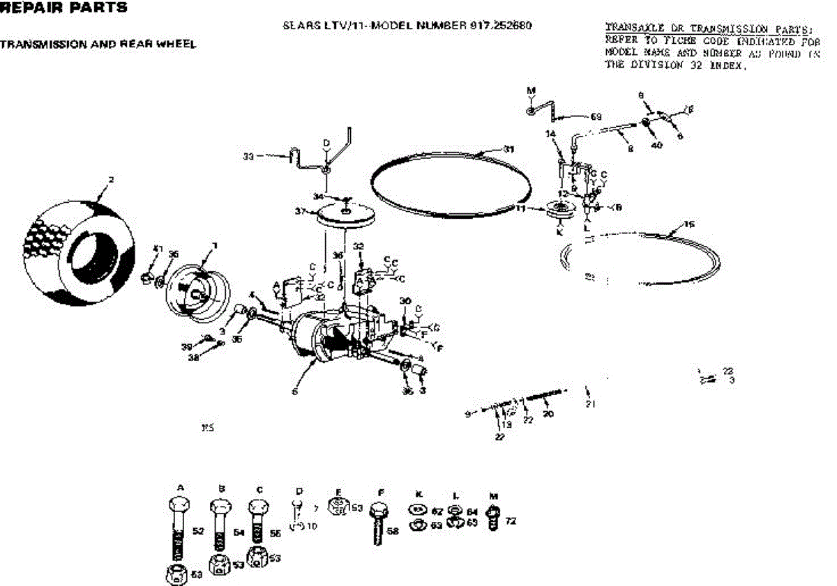 Parts for Craftsman 917252680: Transmission & Rear Wheel Parts