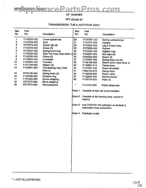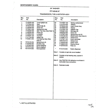 Parts for Frigidaire 6504E: Transmission, Tub And Agitator Assembly Page 2 Parts
