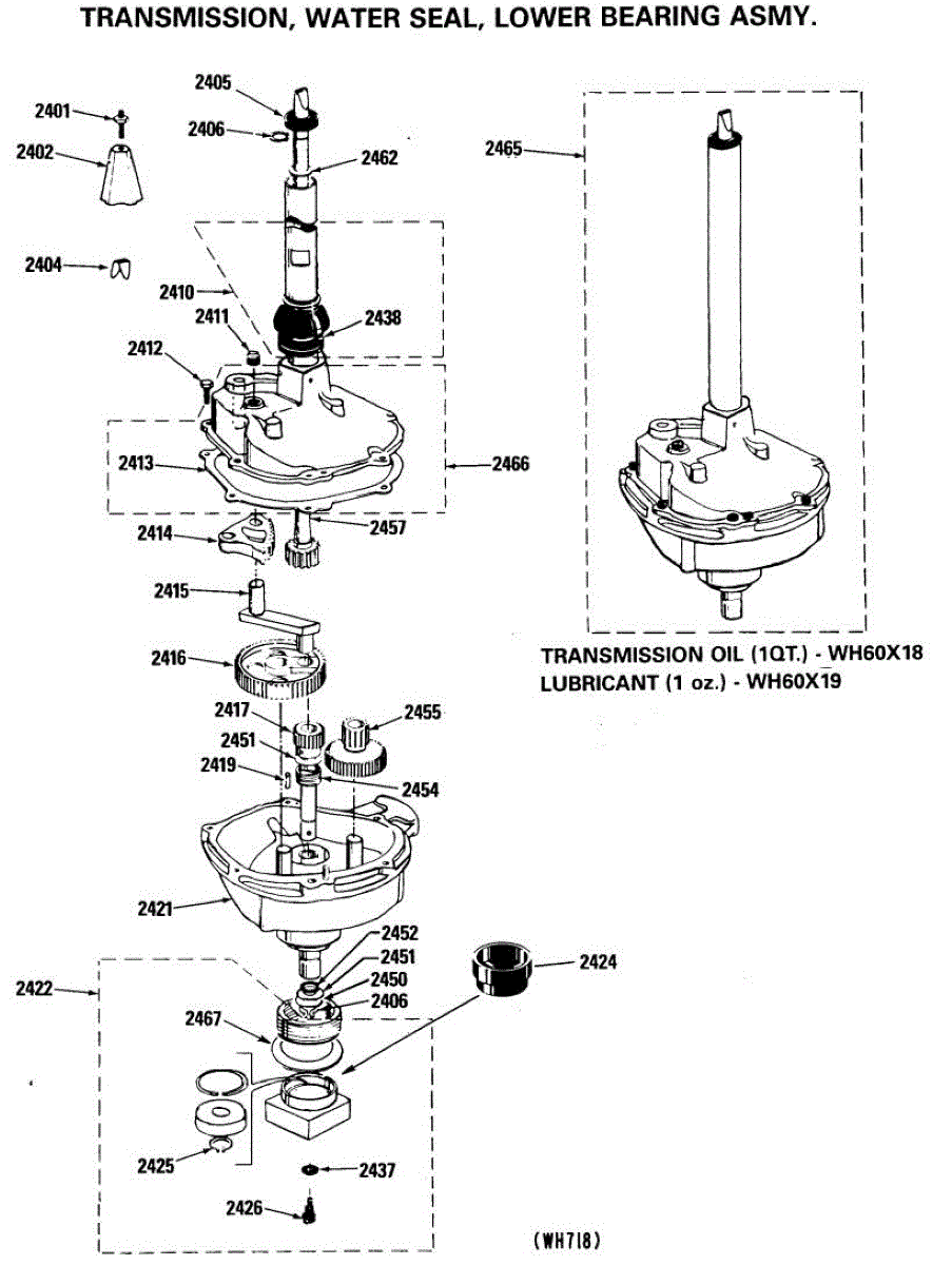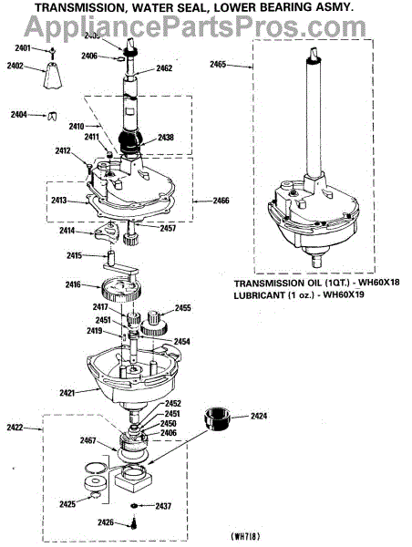 Parts for Ge WSM2000HCW: 06 - Transmission, Water Seal, Lower Bearing Asmy. Parts