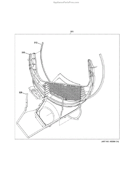 The Trap Duct Assembly for Dryer is an OEM replacement part for GE dryers. It forms the internal ductwork connection between the dryer drum and the vent tube. This assembly is critical for proper airflow and efficient moisture removal during the drying cycle.