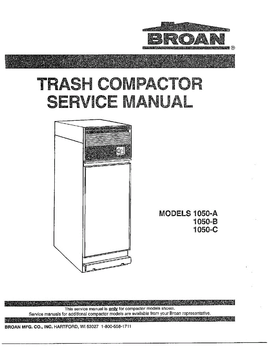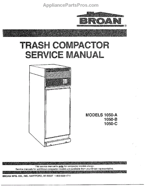 Parts for Broan 1050: Trash Compactor Parts