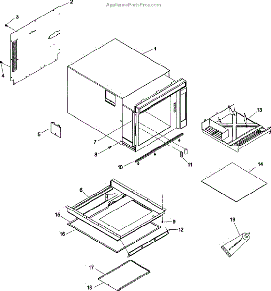 Parts for Amana RC5MDTM-P1327615M: Tray, Grease Shield, Cabinet, Parts