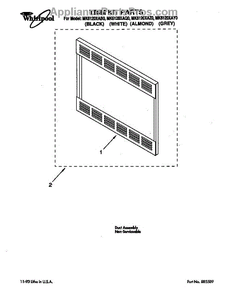 Parts for Whirlpool MK6120XAB0: Trim Kit Parts