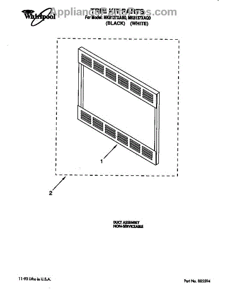 Parts for Whirlpool MK8137XAB0: Trim Kit Parts