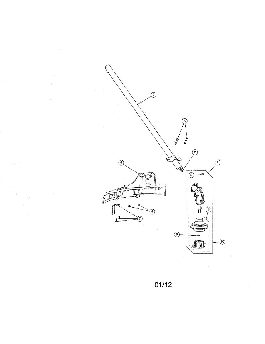 Lower boom assembly for gas line trimmers. Connects the engine housing to the cutting head. Replace if cracked, bent, or damaged from impact. Essential structural component.