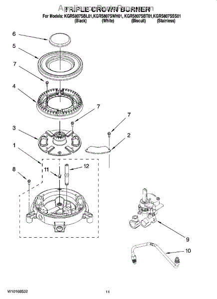 Parts for Kitchenaid KGRS807SBT01: 08 - Triple Crown Burner Parts