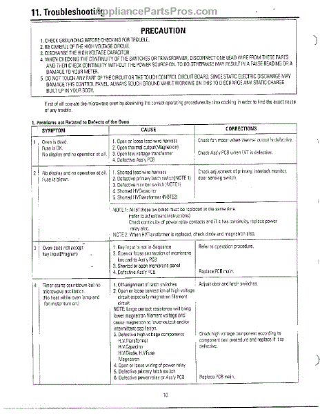 Parts for Samsung MC6566W/XAA: Troubleshooting Parts