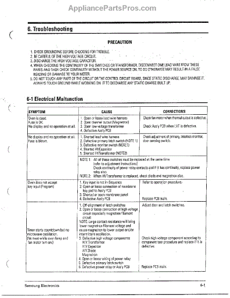 Parts for Samsung MW4371G/XAA: Troubleshooting Parts