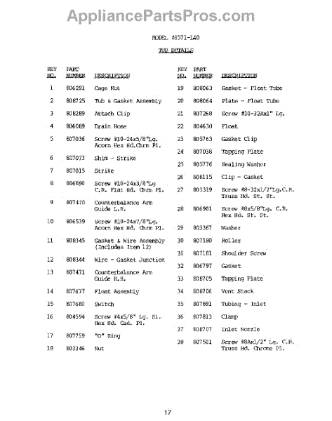 Parts for Roper 8571L40: 18 - Tub Parts