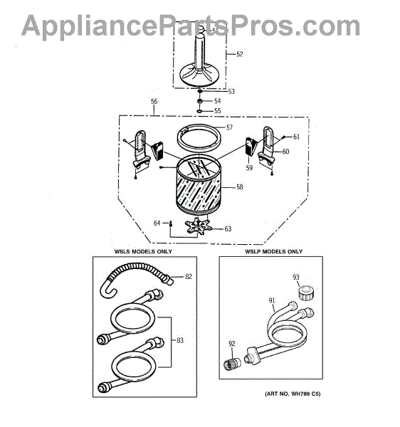 Parts for Ge WSLS1100A1WW: 03 - Tub & Agitator Parts