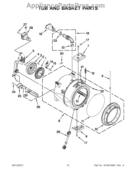 Secures hoses and seals to the washer tub for leak-free operation. Replace if damaged or weakened to prevent leaks. Confirm fit with your model.