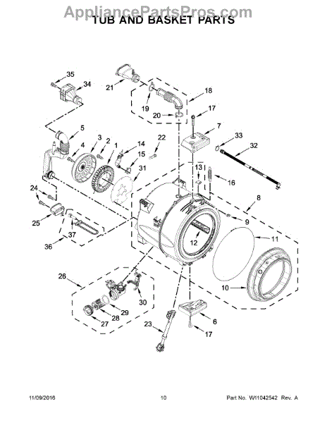 The Bellow is an OEM part for Whirlpool washing machines, designed to create a watertight seal between the washer door and the drum. This flexible rubber or silicone component prevents water from leaking out of the front-load washer during operation.
