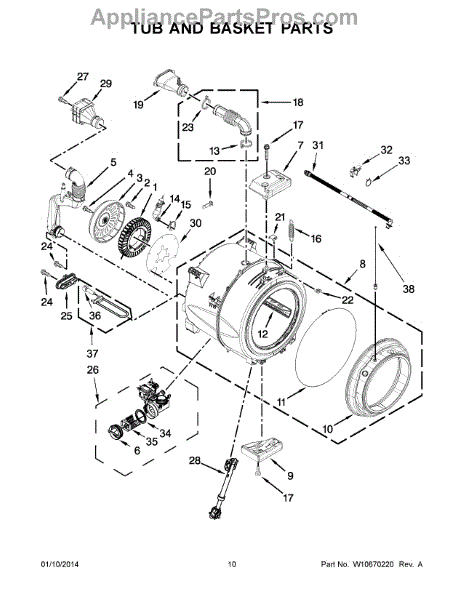 The Bellow is an OEM part for Whirlpool washing machines. It acts as a flexible seal between the washer's door and drum, preventing water from leaking out during wash and spin cycles. The bellow also helps to absorb vibrations, ensuring smooth and quiet operation of the washer.