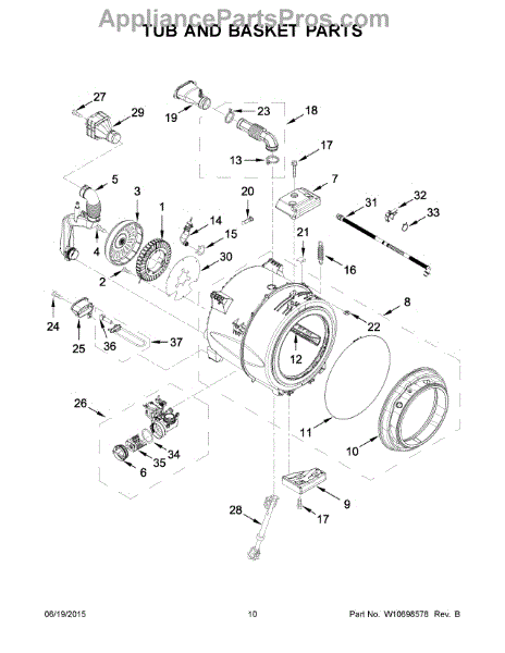 The Bellow is an OEM part for Whirlpool washing machines, designed to create a watertight seal between the washer door and the drum. This flexible rubber or silicone component prevents water from leaking out of the front-load washer during operation.