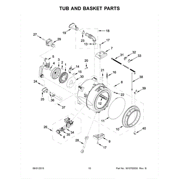 This tub clamp secures a flexible seal or hose to the appliance's tub, maintaining a tight, leak-resistant connection. Replace a weakened or damaged clamp to stop leaks and keep the tub joint stable during operation.
