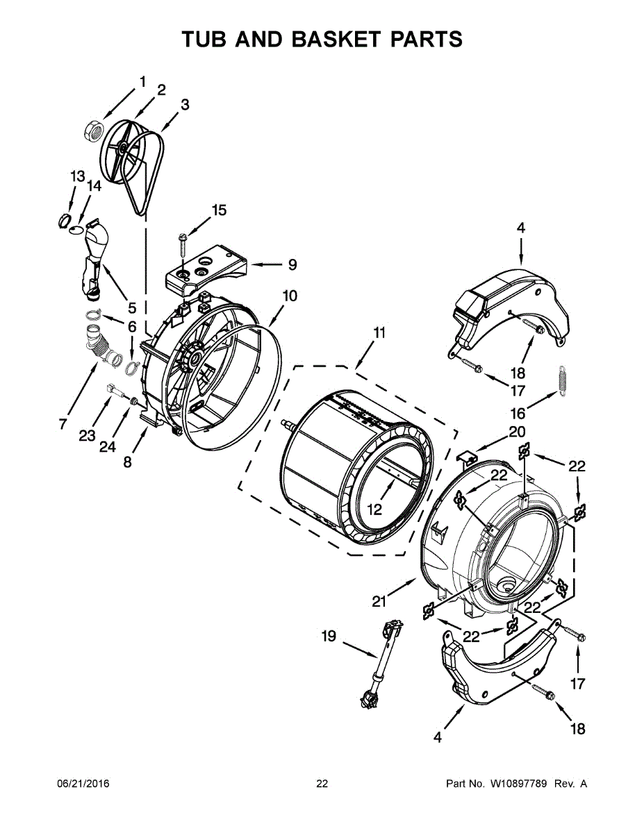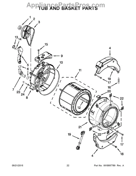 Service tub gasket that creates a watertight seal between the washer tub and cabinet. Replaces a worn or damaged seal to help stop leaks and limit water damage around the appliance. What it does: