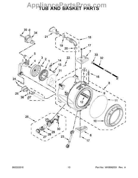 The Bellow is an OEM part for Whirlpool washing machines, designed to create a watertight seal between the washer door and the drum. This flexible rubber or silicone component prevents water from leaking out of the front-load washer during operation.