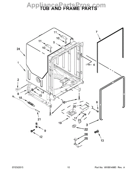You should replace this cabinet seal if it becomes damaged, worn out, or loses its elasticity. Causes of a bad cabinet seal can include regular wear and tear, exposure to high temperatures, or buildup of detergent and mineral deposits, which can degrade the seal material over time.