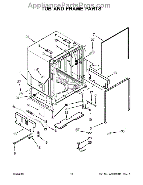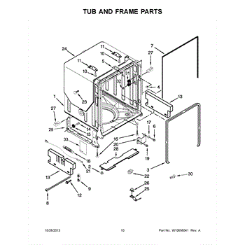 The primary causes of wear or damage to the tub wheel assembly can include regular use, excessive load on the racks, or accidental force applied when loading or unloading dishes. These can lead to broken wheels or dislodged fittings, necessitating replacement to maintain functionality.