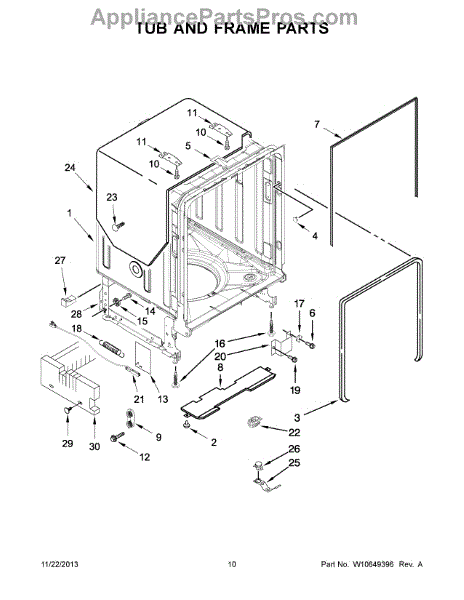 Parts for Kitchenaid KDTE104DWH0: 06 - Tub And Frame Parts