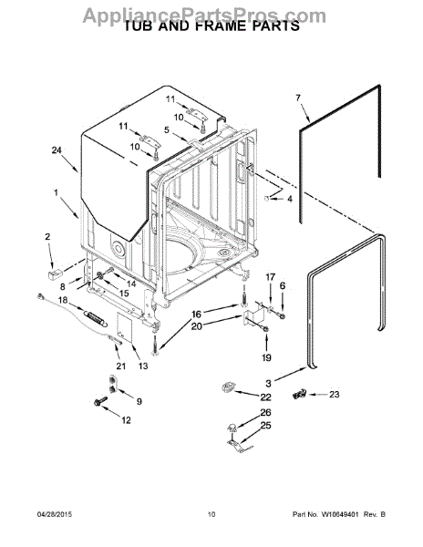You should replace this cabinet seal if it becomes damaged, worn out, or loses its elasticity. Causes of a bad cabinet seal can include regular wear and tear, exposure to high temperatures, or buildup of detergent and mineral deposits, which can degrade the seal material over time.
