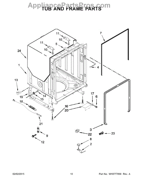 The Cabinet Seal is an OEM part for Whirlpool dishwashers. This seal is crucial for preventing water leaks by creating a watertight barrier between the dishwasher tub and the door. It ensures that water stays inside the dishwasher during the wash cycle, maintaining the appliance's efficiency and protecting your kitchen from water damage.