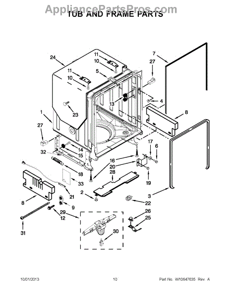 The door balance mount is the side-frame bracket that supports the dishwasher's door counterbalance system. When worn or broken, it can let the door drop, slam, bind, or feel heavy. Replacing it restores smooth, controlled door movement. What it does