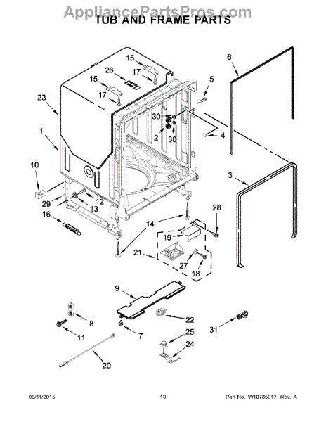 Over time, the wheel and bracket assembly can wear out or become damaged due to repeated use, heavy loads, or accidental impacts. Such issues can cause difficulty in maneuvering the dishwasher rack, leading to inconvenience and potential damage to the dishes or dishwasher.