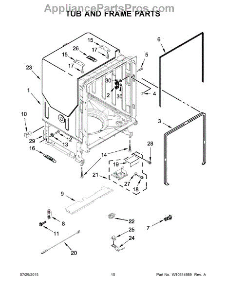 Over time, the wheel and bracket assembly can wear out or become damaged due to repeated use, heavy loads, or accidental impacts. Such issues can cause difficulty in maneuvering the dishwasher rack, leading to inconvenience and potential damage to the dishes or dishwasher.