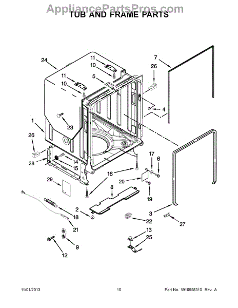 The door balance mount is the side-frame bracket that supports the dishwasher's door counterbalance system. When worn or broken, it can let the door drop, slam, bind, or feel heavy. Replacing it restores smooth, controlled door movement. What it does