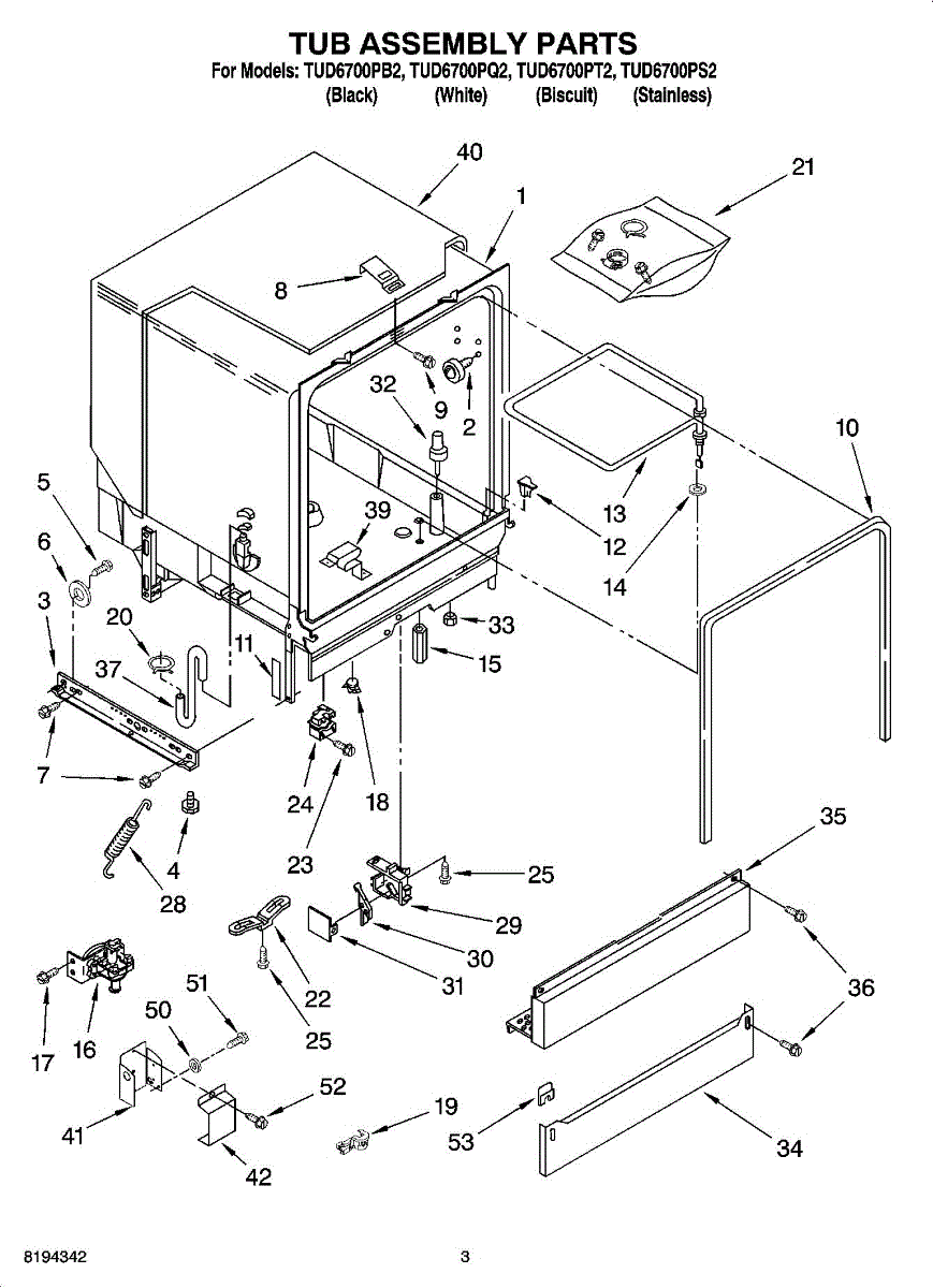 Parts for Estate TUD6700PQ2: 03 - Tub Assembly Parts