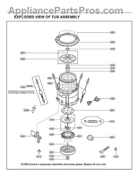 This suspension assembly supports the washer drum and helps stabilize the tub during spin cycles to reduce vibration and noise. Use it to restore normal drum alignment and improve washer operation. What it does:
