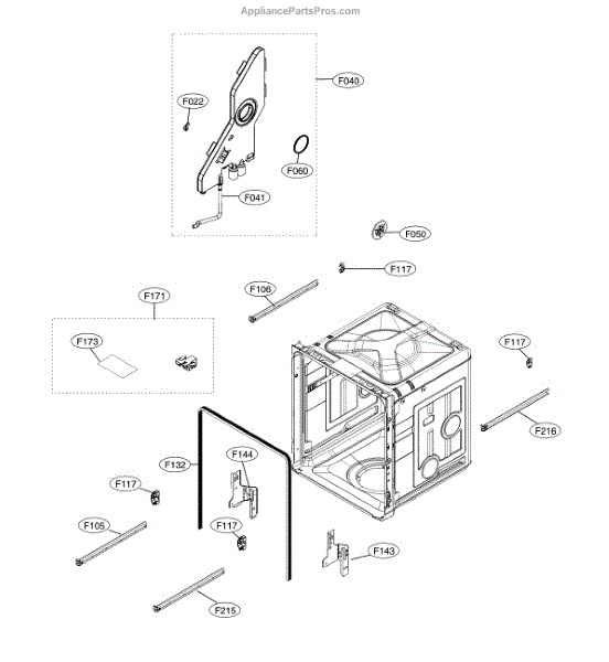 This factory-assembled replacement installs in the same location as the original assembly on your appliance. It restores proper fit and operation when the original component is broken, worn, or missing.