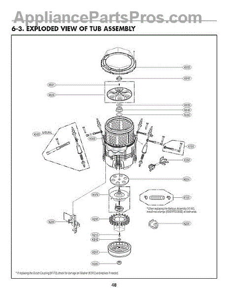 The Clutch Coupling & Housing Assembly is an OEM component for LG front-loading washers. This assembly contains the clutch coupling that links the motor to the drive components to rotate the washing drum.