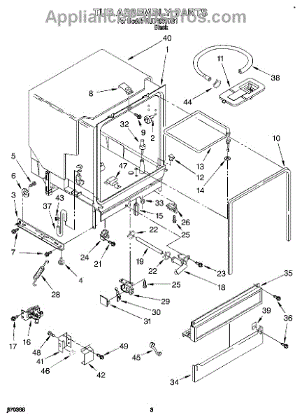 The Deflector is an OEM replacement part for Whirlpool dishwashers. Located in the lower corners of the tub, this component works to prevent leaks by keeping water from entering the cracks along the tub edges.