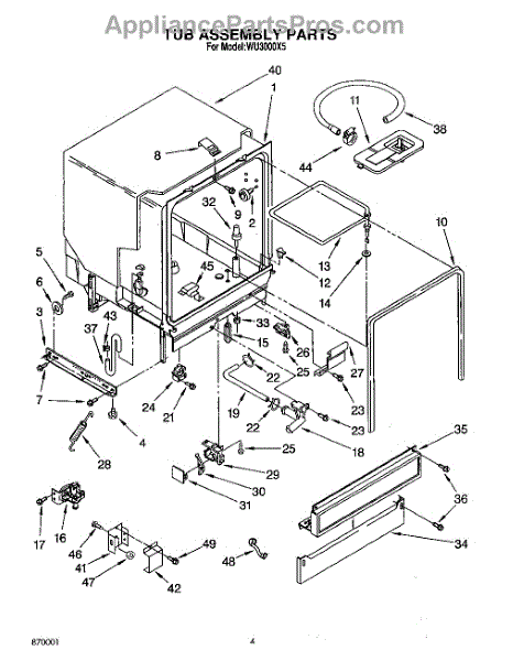 The Deflector is an OEM replacement part for Whirlpool dishwashers. Located in the lower corners of the tub, this component works to prevent leaks by keeping water from entering the cracks along the tub edges.
