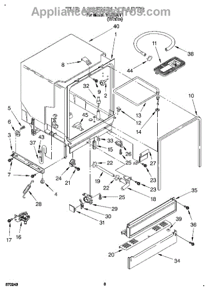The Deflector is an OEM replacement part for Whirlpool dishwashers. Located in the lower corners of the tub, this component works to prevent leaks by keeping water from entering the cracks along the tub edges.
