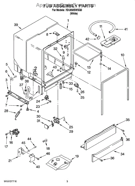 The Deflector is an OEM replacement part for Whirlpool dishwashers. Located in the lower corners of the tub, this component works to prevent leaks by keeping water from entering the cracks along the tub edges.