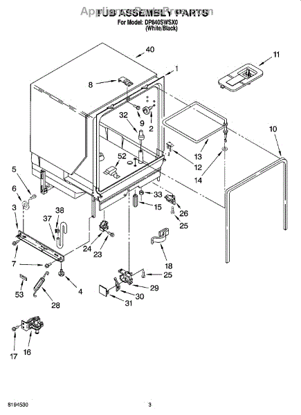 Parts for Whirlpool DP840SWSX0: 03 - Tub Assembly Parts