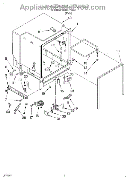 The Deflector is an OEM replacement part for Whirlpool dishwashers. Located in the lower corners of the tub, this component works to prevent leaks by keeping water from entering the cracks along the tub edges.