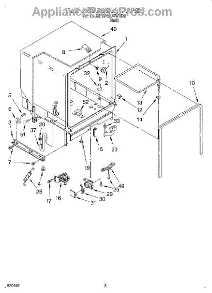 The Deflector is an OEM replacement part for Whirlpool dishwashers. Located in the lower corners of the tub, this component works to prevent leaks by keeping water from entering the cracks along the tub edges.