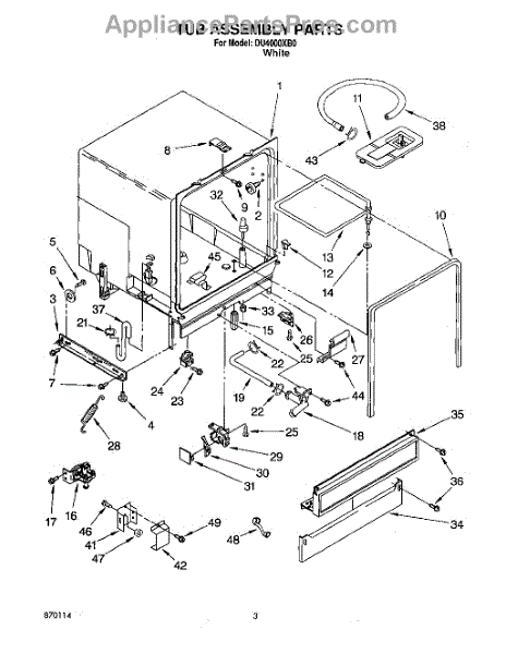 The Deflector is an OEM replacement part for Whirlpool dishwashers. Located in the lower corners of the tub, this component works to prevent leaks by keeping water from entering the cracks along the tub edges.