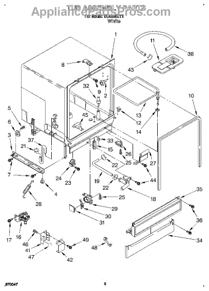 The Deflector is an OEM replacement part for Whirlpool dishwashers. Located in the lower corners of the tub, this component works to prevent leaks by keeping water from entering the cracks along the tub edges.