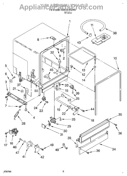 The Deflector is an OEM replacement part for Whirlpool dishwashers. Located in the lower corners of the tub, this component works to prevent leaks by keeping water from entering the cracks along the tub edges.
